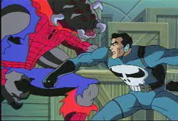 So yeah, there was a fair amount of idiocy in the editing for this one. But luckily the was an even greater amount of awesomeness. While Semper’s script isn’t 100% flawless (Mary Jane: “Harry you brave fool!”) there are some very choice lines of dialogue that while aren’t exactly memorable do add to the overall nature of the episode in certain ways. As said before, the Punisher is mostly silent when he’s alone, not even making any grunts or groans when he moves around which is pretty cool. But one of the first lines he says is after Microchip questions him on what the heck happened, Castle responds “I stared the Devil in the eye…and I blinked.” That’s some pretty heavy stuff for a kid’s show, and while it may not make a whole lot of sense it’s still pretty cool. Other fun throwaway lines include Kraven’s first upon returning to NY as he sniffs and says “New York…” in a rather disgusted way. There were a couple of very interesting lines as well. The first is Microchip’s blink-and-you’ll-miss-it line to Punisher as he says “You’ve been at it since ‘Nam. Aren’t you tired?” Now the Punisher’s set in stone history in the comics has always been very up front and specific about this little facet. Whereas Peter Parker got bitten by a radioactive spider in 1962 but the year is never referenced for obvious reason in the comics (it’s always like ten or fifteen years ago) Frank Castle has always been a Vietnam veteran and has fought crime ever since coming back from the war. And in the comics, or at least in the MAX version, he’s intentionally one of the very few comic book characters to have actually aged with the times. Even still, I’m still very surprised this line was put in here. I just was not expecting that little drop of history, both fictional and non fictional.