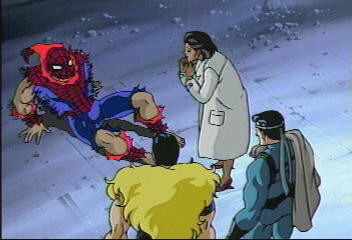 MY THOUGHTS: This is really the most peculiar episode to date that’s been covered in my reviews, and the most interesting one just on a “to watch” level. After the greatness that was the previous “Enter the Punisher” we have a solo writer’s outing by executive producer John Semper himself bringing to the table basically a horror story in a Spider-Man cartoon. It’s really nothing ever seen before or really since in Marvel animation, and it comes the closest to chasing Batman: the animated series in terms of dark, moody atmosphere. What pushes this along is the overall theme of saving lives that is fairly subdued but an ever-present undercurrent throughout the episode. Even mutated beyond control, Spider-Man still desires to protect people and bring in Morbius, thus making his convictions in the last episode that much stronger. The Punisher reaffirms his mission to save lives by killing whatever monsters threaten the innocent. Even Morbius still wants to cure himself to prevent him from attacking anyone else, and the theme is continued through the efforts of Flash Thompson, Harry Osborn, the police of course, and finally Kraven and Mariah Crawford. I’m not necessarily a horror fan, but it’s an interesting way to go about the genre by setting up characters and their respective goals to prevent the loss of human life, and to have that goal bring each character through a conflict that endangers and threatens said lives. If that is what Semper was going for here, he certainly suceeded in my book.