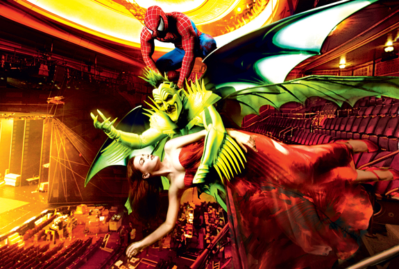 Woah! Up till now I gave Julie Taymor the benefit of the doubt. She made The Lion King so she MUST know what she’s doing, doesn’t she? These pictures have me thinking this is going to be awful, though. I never realized that they would add action figures to the cast. (Or is this just Annie Leibowitz’s art taking over?!) I’m never going to see it anyway, but if they don’t come up with something impressive in terms of publicity, I can’t imagine anyone will want to. Well, there’s a bit of hope left …