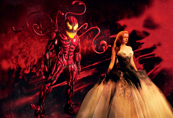 Vogue has just posted some new pics from the Spider-Man musical. It seems they nailed the Carnage costume. It also seems that they’re dumping the Goblin glider and just giving him wings? Thoughts? Leave em in the comment section.