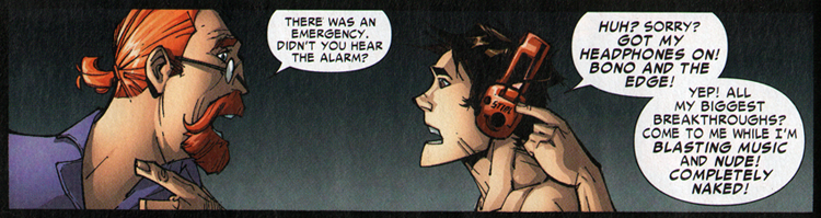 And to defend Carlie in this panel, loath though I am to do so, there is no reason she wouldn’t understand what Peter was saying as she has consistently shown herself to be science-savvy. Is she as smart as Pete? No, he still had to explain some of what he was doing.