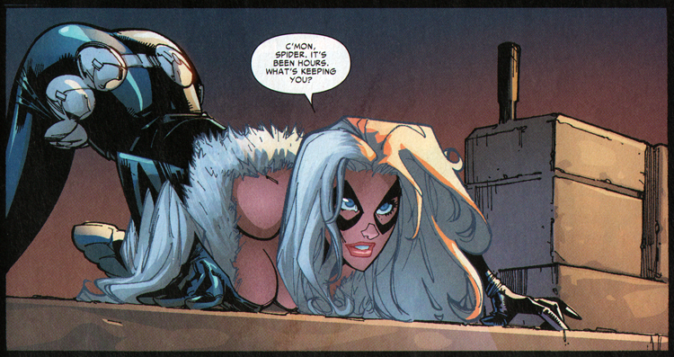 Why so much fuss over the Felicia panels? They are unrealistic fanservice, like we’ve always seen in Ramo’s work. Still, that is all it is. Every super heroine is depicted to look like a supermodel or a femfatal (in spandex), and nothing is new about that (not even in Spider-man). What I find most offensive is the seemingly deliberate bashing of MJ, and complete disregard for her popularity among the fans. Not only is it so obvious what they are trying to do, it is so disrespectful and insulting to the readers that I cannot understand how this can be considered professional writing. I’ve seen fan fiction authors do a more professional character assassination than what Marvel is currently trying to do. The only reason that I can see why Spider-man still sells, is because it is an established character that people have come to love. Is it any wonder people are angry at Marvel? Anyway, one thing is clear. Who ever it is that urges these MJ bashing scenes into the comics, should never ever have anything to do with the product. Be that writer or editor. They clearly don’t have the needed competence for story telling. I mean, Spider-man doesn’t even have the collective focus point for the readers anger to distract them from seeing how bad it really written. It could be that they are trying to make MJ into that focus point, the way they keep bashing her, but that only shows how little they’ve understood of the concept (can’t be done with a character who is undeserving of the slander). I just hope it is editorial influence at work, and not the writer. Any writer willing to write it (like that) isn’t worth the paper they are writing on.