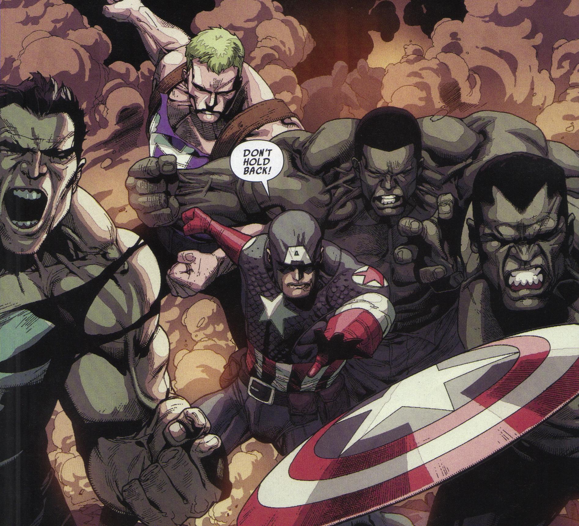 Gregory appears in the middle of the fight and snatches Thor’s hammer when it’s thrown to him. Gregory starts to lay down the smack down on the Ultimates and Avengers until Tony activates his electromagnetic pulse in his suit, taking out every piece of electronics in a ten mile radius, Gregory’s equipment included.