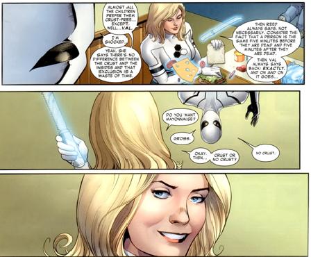 A Spectacular Exchange: With so many great Spider-Man moments in these issues, you’d think it would be hard to pick one, but one scene moved me with it’s simplicity yet depth. In a scene where Sue is preparing lunch for the kids, her and Peter discuss the villains Reed has assembled and it’s a fantastic scene topped off with a great moment where Peter learns all the kids have their crusts cut off and then when offered, has his cut off as well. It just felt really deep and like an intimate family moment.