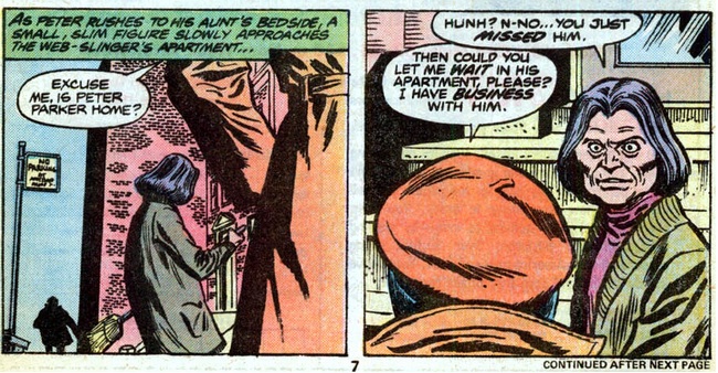 Our story begins in “Amazing Spider-Man” issue 182 where a mysterious figure (who are we kidding it’s Betty) approaches Peter’s landlady Mrs. Muggins.