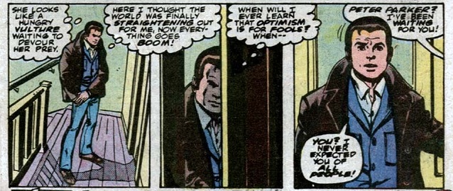 Here she reminds Peter of their past relationship. For the readers it is exposition if they aren’t familiar with Betty (who hasn’t been in the title since issue 156), for Betty…it’s a reminder to Peter to set up what she is about to spring on him.