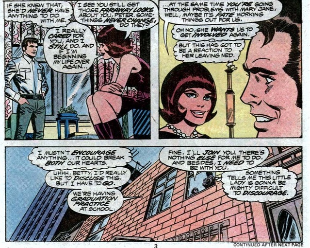 Don’t let Betty fool you. She had “restarting things” with Peter in her mind from the start. Why else would she have broken into his apartment and fished about Mary Jane?