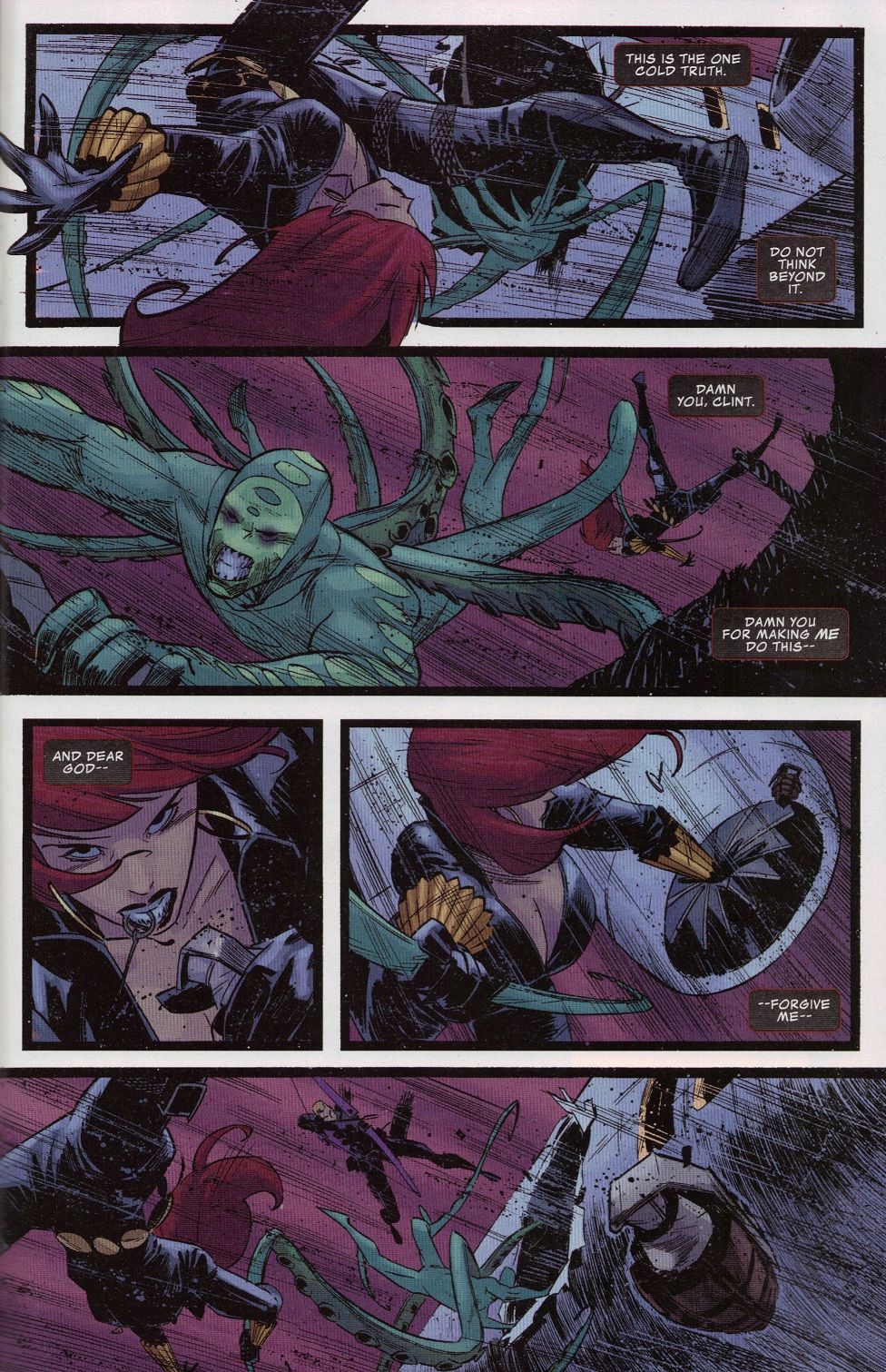 Black Widow, believing herself the only one left, takes it upon herself to stop the last jet en route to Cairo. She also gets an inner monologue, basically telling herself that the mission is all that matters. Her fight with Hawkeye is highly reminiscent of their encounter in the Avengers film (particularly because in both instances Clint is possessed). I liked the intensity of it, especially when Clint jumps off the plane and shoots a sticky arrow at Widow’s grenade.