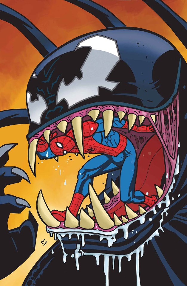 All I get from this is “VENOM LOVES SPIDER- COOKIE, VENOM GOBBLE UP TASTY SPIDER- COOKIE, YUM YUM.” Sorry I have been on a Sesame Street kick of late and I think it’s finally cute to see the Spider-Man character struggle with Venom again. By the looks of it, it’s gotta be our boy Parker which I’m thankful for.