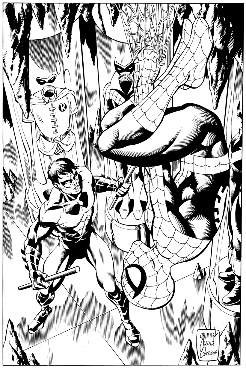 Spidey gets the drop on Dick Grayson in this Tom Grummett piece.