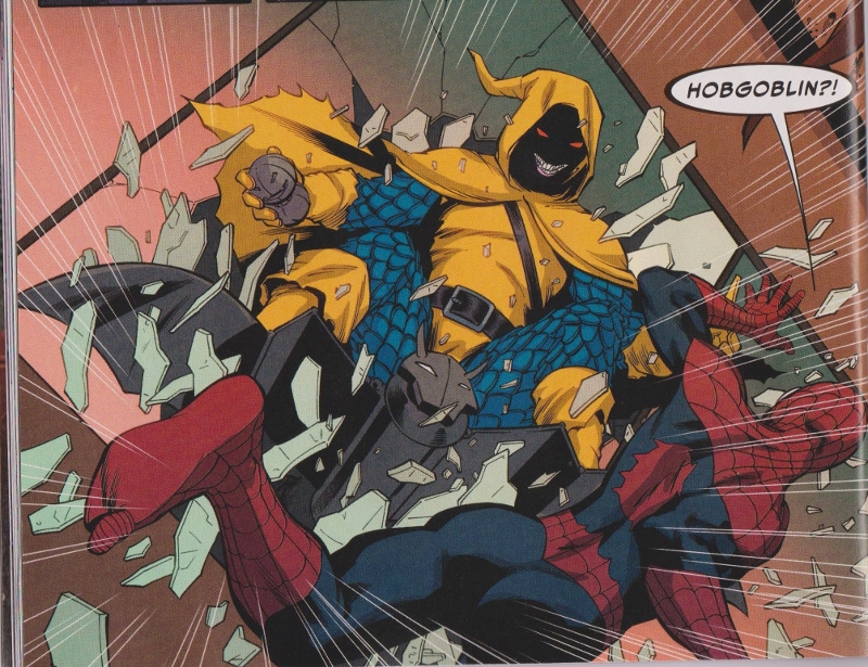 When Ock recovers he uses a spider-tracer to track Mysterion, who is calling the benefactor who gave him Mysterio’s costume in a panic over two different heroes trying to kill him. Ock hacks in and traces the phone call which leads him to the original Hobgoblin! This is a pretty cool plot twist until Octo-Spidey wins their fight in two pages in a pretty casual manner by webbing Hobby’s Glider out from under him and then webbing him up as he falls.