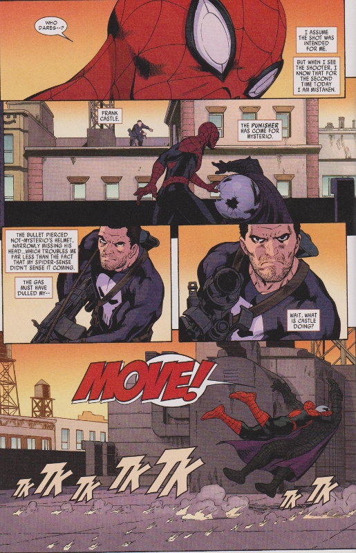 Mysterion escapes while Octo-Spidey and Punisher fight. Punisher wins and advises Spidey to turn back on being ruthless before it consumes him.