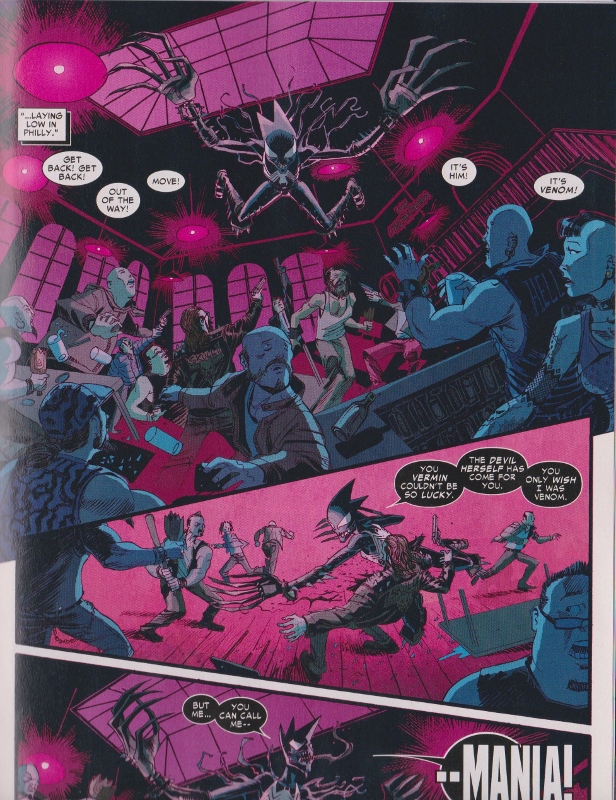 The Andi as Mania stuff continues to be written really well. I liked her conversation with Flash as he tries to tell her of the dangers of symbiote control and he thinks it is changing her personality, and she replies “You Barely Even Know Me.” Yes, objectively Flash is right, the symbiote is highly dangerous and she probably isn’t strong enough to control it. At the same time she’s right too: Flash barely knows her and teenagers can be irrational and unpredictable under the best of circumstances. Her father was murdered in front of her and the man responsible was just a brain-washed dupe with no free will so she’ll probably never get justice for that crime. I’d expect her to be filled with rage even if she didn’t have a symbiote bonded to her. That she didn’t kill Jack in the end of the last issue showed remarkable restraint all things considered.