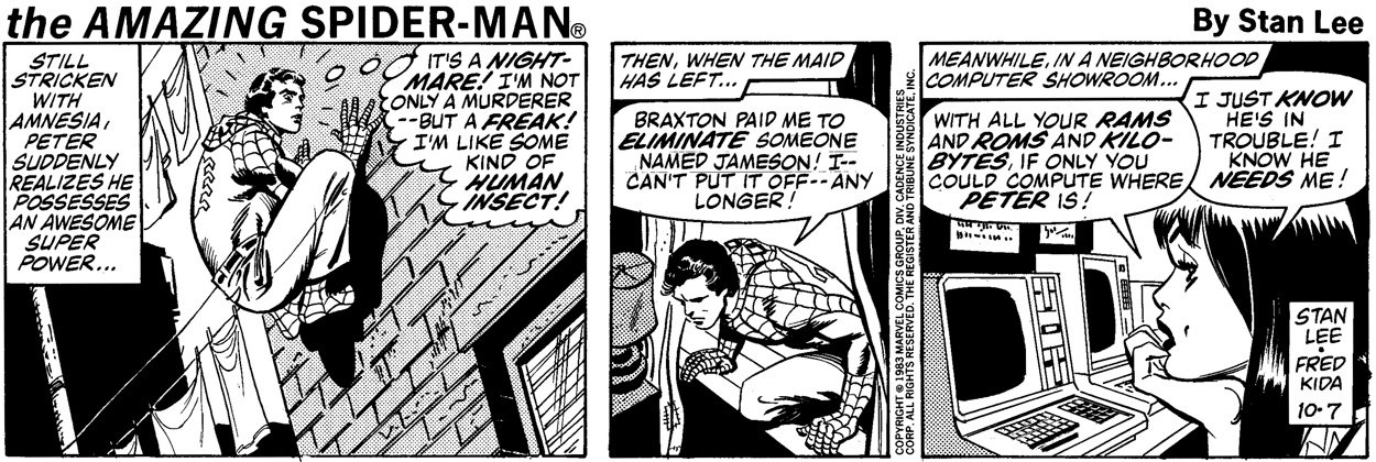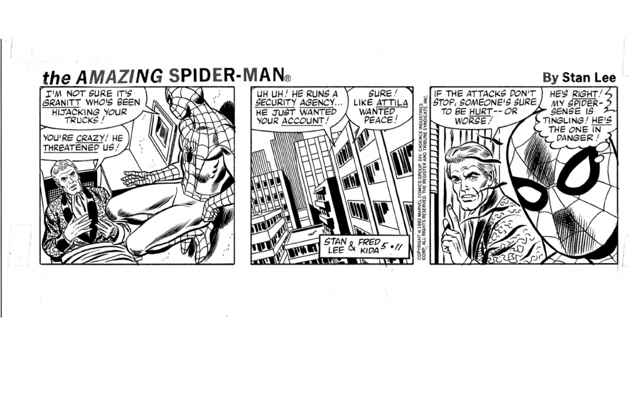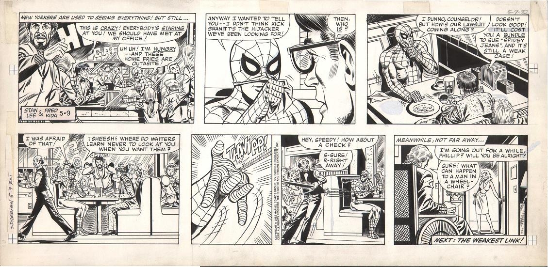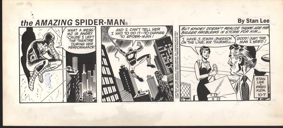 3. According to Wikipedia: “In 1980 and 1981, concurrent with the Hulk strip, Lieber contributed some degree of penciling on the daily and Sunday comic strip The Amazing Spider Man until Fred Kida took over as regular penciler. Lieber then succeeded Kida on the daily strip in 1986. Lieber also penciled the Sunday page again from 1990 through at least 1995.”