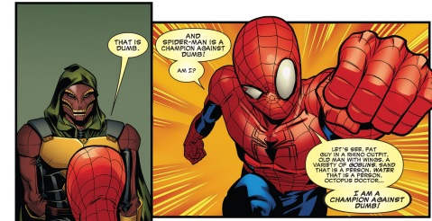 But after reading the first couple issues of Amazing Spider-Man, I found I liked this a lot more than those issues, which I also think rank a B. I also laughed at pretty much every joke in this issue, while Slott is very hit n’ miss with me.