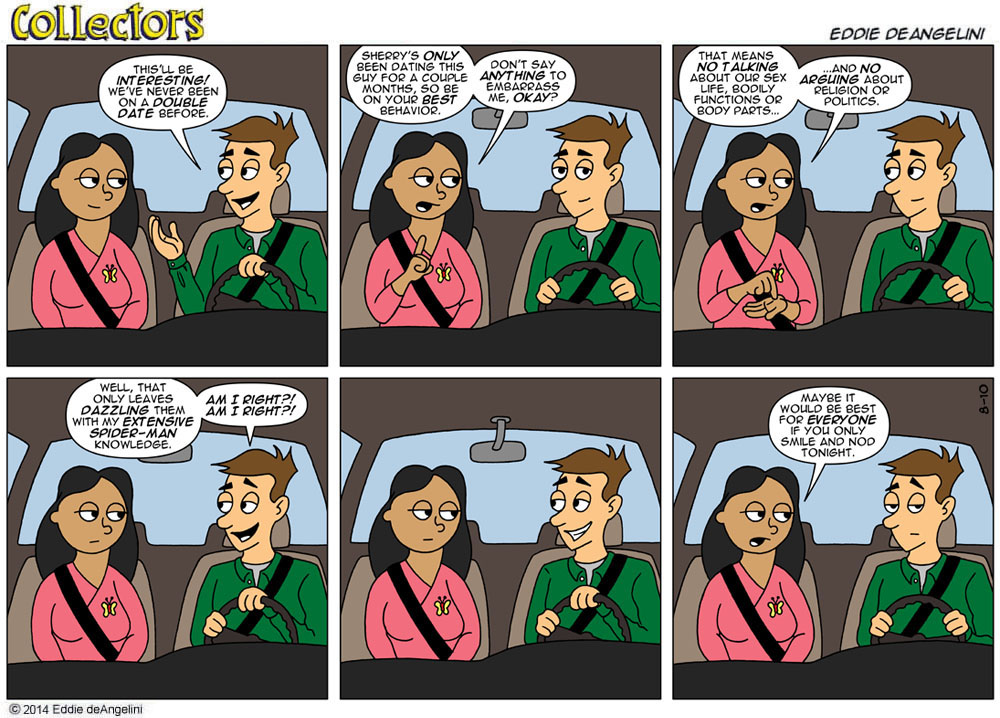 View articlesEddie deAngelini is a long time comic book fan and collector. He is the writer and artist of the internet comic strip Collectors, which is loosely based on his own life, marriage and comic collecting obsession. His love of comics began at a young age and his claim to fame is owning every issue of Amazing Spider-Man. He currently lives in Los Angeles with his wife Kristen, where they plan together for the inevitable zombie apocalypse.