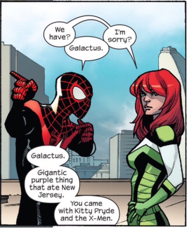 Javi’s Huh?: So, Jean read all that from Miles’ mind and she couldn’t pluck the location of the rift out of that and needed a friendly neighborhood ultimate escort? Let’s chalk it up to this being a younger, more inexperienced Jean Grey as I await my No-Prize in the mail!