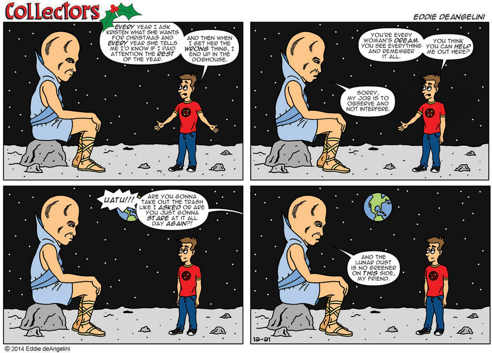 View articlesEddie deAngelini is a long time comic book fan and collector. He is the writer and artist of the internet comic strip Collectors, which is loosely based on his own life, marriage and comic collecting obsession. His love of comics began at a young age and his claim to fame is owning every issue of Amazing Spider-Man. He currently lives in Los Angeles with his wife Kristen, where they plan together for the inevitable zombie apocalypse.