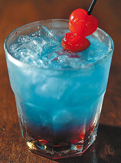 As for the drink itself, I’m not a drinker, but shouldn’t it be half-red/half-blue? And isn’t there something you can add to a drink that spreads out through the drink in small black threads, like webbing?