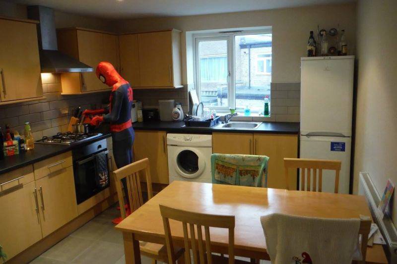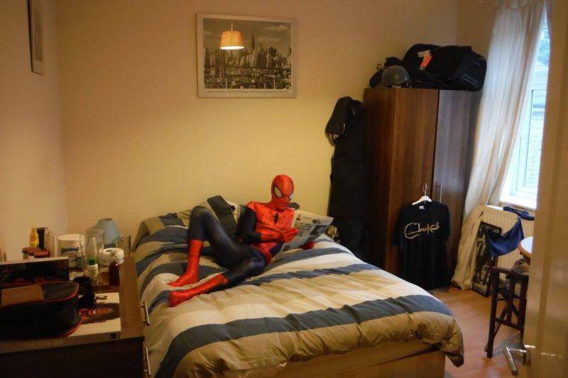 A Spider-Man fan from London is looking for a flatmate to split the rent. This listing is for a three bedroom, two bathroom house. The Spidey fan took several pictures to show off the rooms. Rent is about $1,000 a month. Spidey doesn’t want smokers or people with pets. Would you move in with Spidey? Here’s a link to the listing.