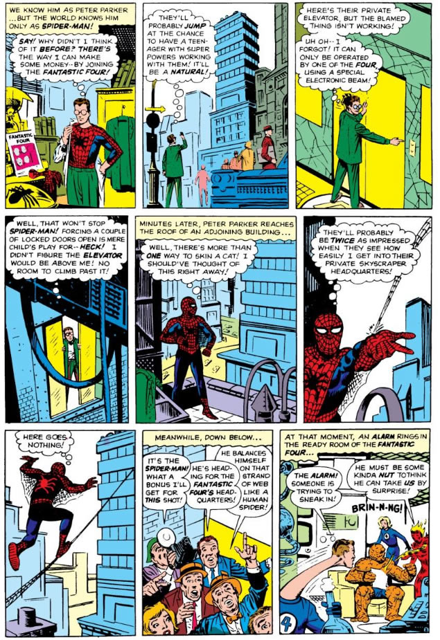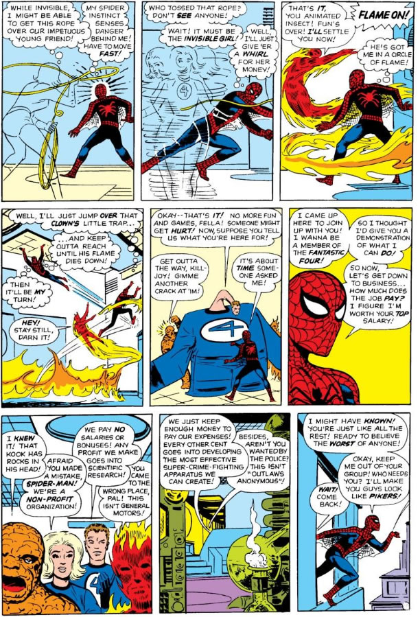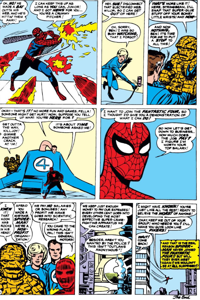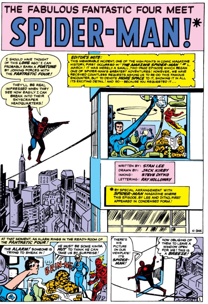I actually read the Annual version of the scene before I read ASM #1. It’s great although Kirby Spidey looks odd…then again Ditko F4 look odd too. And yet when Ditko inked Kirby it was magical.