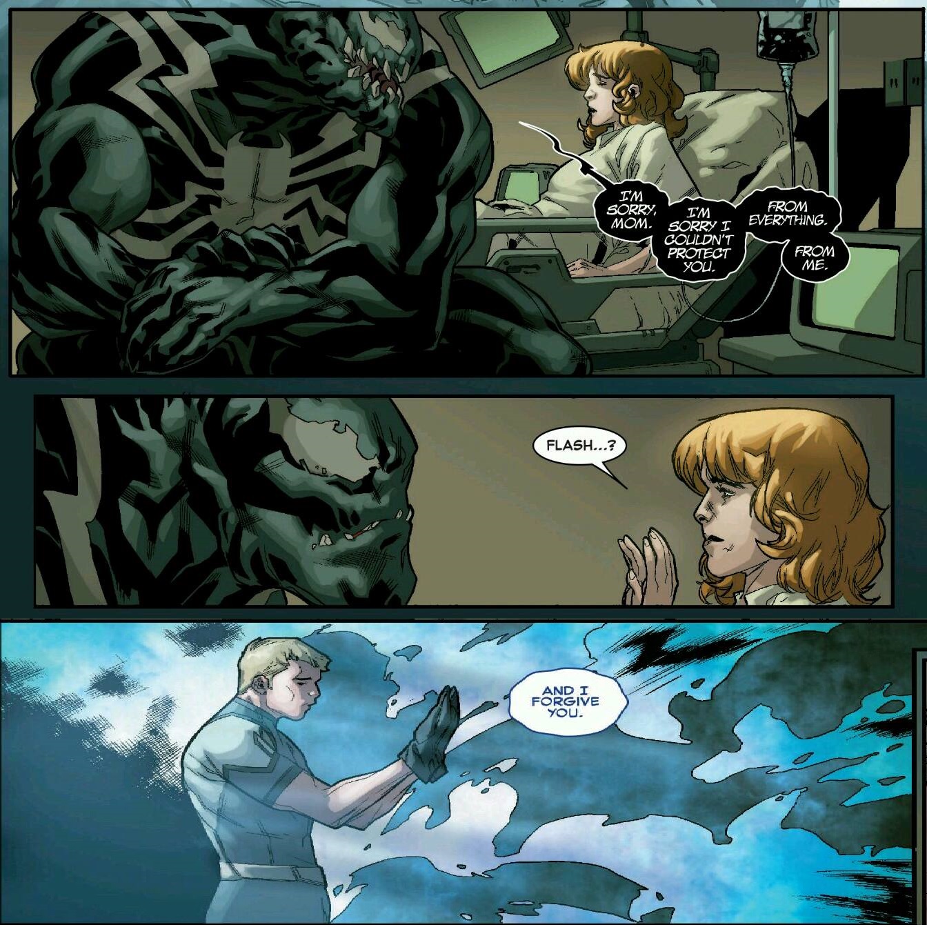 Thankfully, the final trial saves the day. Rose Thompson’s fear of Venom (going all the way back to 2012) is a long untouched plot point from Flash’s past. Flash’s mother was traumatized when Flash mutilated Human Fly in front of her (back in the Savage Six storyline) and Venom began to haunt her when he was possessed by a demon. Venom tormenting his mother is one of the reasons Flash left New York and is usable as a reason for Flash leaving Earth as well. In his trial, Flash is trapped in Venom’s most monstrous form and yet he still manages to reach out to his mother. Flash is shown to be incredible competent at handling Venom this issue and Rose Thompson is what allows Flash to overcome Venom this issue.