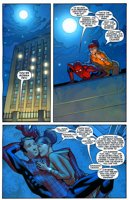 I think the main problem is, nobody wants to take MJ and create her own personality. In the years she’s been around, all she’s been used for has been nothing more than a hot chick in a nightie waking up to console Peter in the middle of the night… or a hot chick in a nightie waiting up for Peter to return from a fight. Or someone who has to be saved.