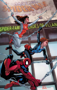 Jump eight years into the future with the web-slinging and wall-crawling Spider-Man family! Peter Parker and Mary Jane’s super-powered daughter, Annie, is now in high school. But when this teen isn’t in class, she’s swinging through the streets with her parents. After all, keeping New York safe from super villains is a family affair! But what new threat has emerged to menace the wall-crawlers? PLUS: Includes 3 bonus MARVEL PRIMER PAGES!