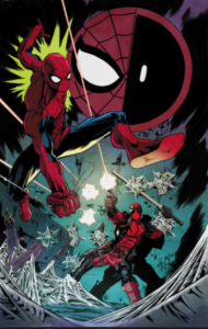 When Spider-Man learns that Deadpool is selling SHIELD tech on the black market it’s the last straw. Bromance? OVER. It’s time to hunt Deadpool! The two biggest characters in comics are facing off and it’s going to take them all over the Marvel Universe, no holds barred. As you can see from this cover, Deadpool’s even willing to use his laser-sharks. And it will all lead to the biggest Spider-Man/Deadpool story of ALL TIME! PLUS: Includes 3 bonus MARVEL PRIMER PAGES!