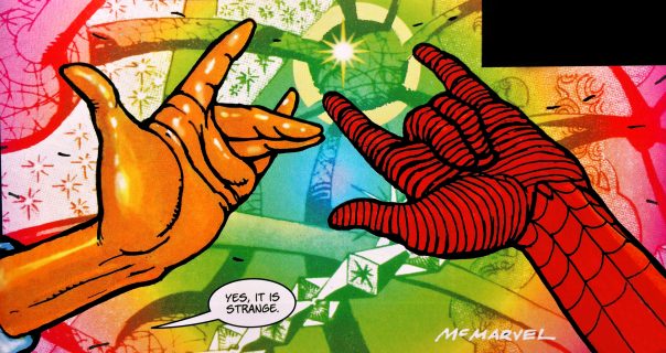 This excerpt from The Book of Vishanti alone taps for the first time one of the most intriguing aspects of Spider-Man’s nature: the existence of an ancient totemic power called “The Spider”. Whether it’s the essence of the spider being or another entity represented by it, it’s unknown; but its bearer (or herald) at this age is Peter Parker. And since Doctor Strange evokes many enchantments and spells from the Vishanti itself, one can only wonder if he already knows the kind of power that lies within Spider-Man. It is the sort of team-up that goes beyond mere coincidence – possibly a connection.
