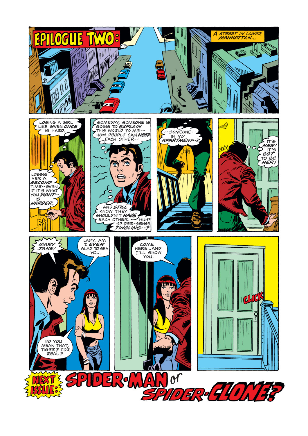 And the final panel of The Amazing Spider-Man #149 shows that Peter’s love for MJ is greater than his love for Gwen. At the end of the original clone saga, Peter decides to leave behind the past and face adulthood. And the symbol of that new and adult life is Mary Jane, and he decides to stay with her.