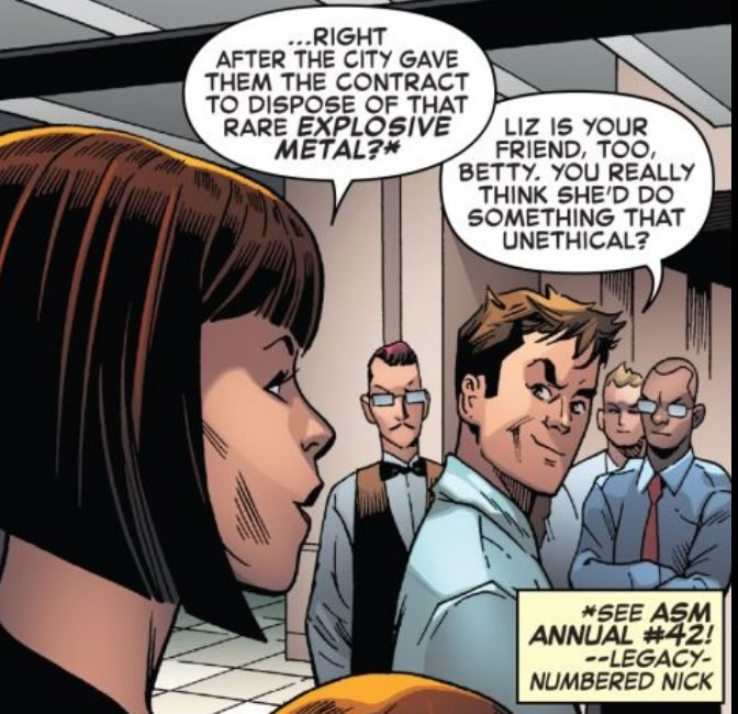 I also appreciate the fact that Spectacular Spider-Man is acknowledged.  I don’t like the identity reveal to JJJ, but at least Slott is being consistent with the other writer.