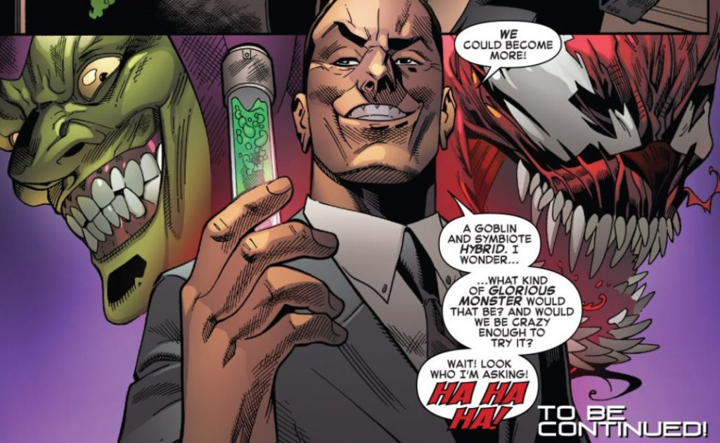 Norman Osborn, in an attempt to get rid of the anti-goblin nano-doohickeys in his system, has launch an elaborate scheme to bond with the Carnage symbiote.