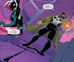 Latour effectively gets you inside Gwen’s head as he juxtaposes flashbacks as Venom encounters The Punisher. It serves Gwen as a subconscious reminder of how she should be dealing with this as the Venom symbiote unleashes her anger at her opponent. It’s also a good recap if you missed last issue!
