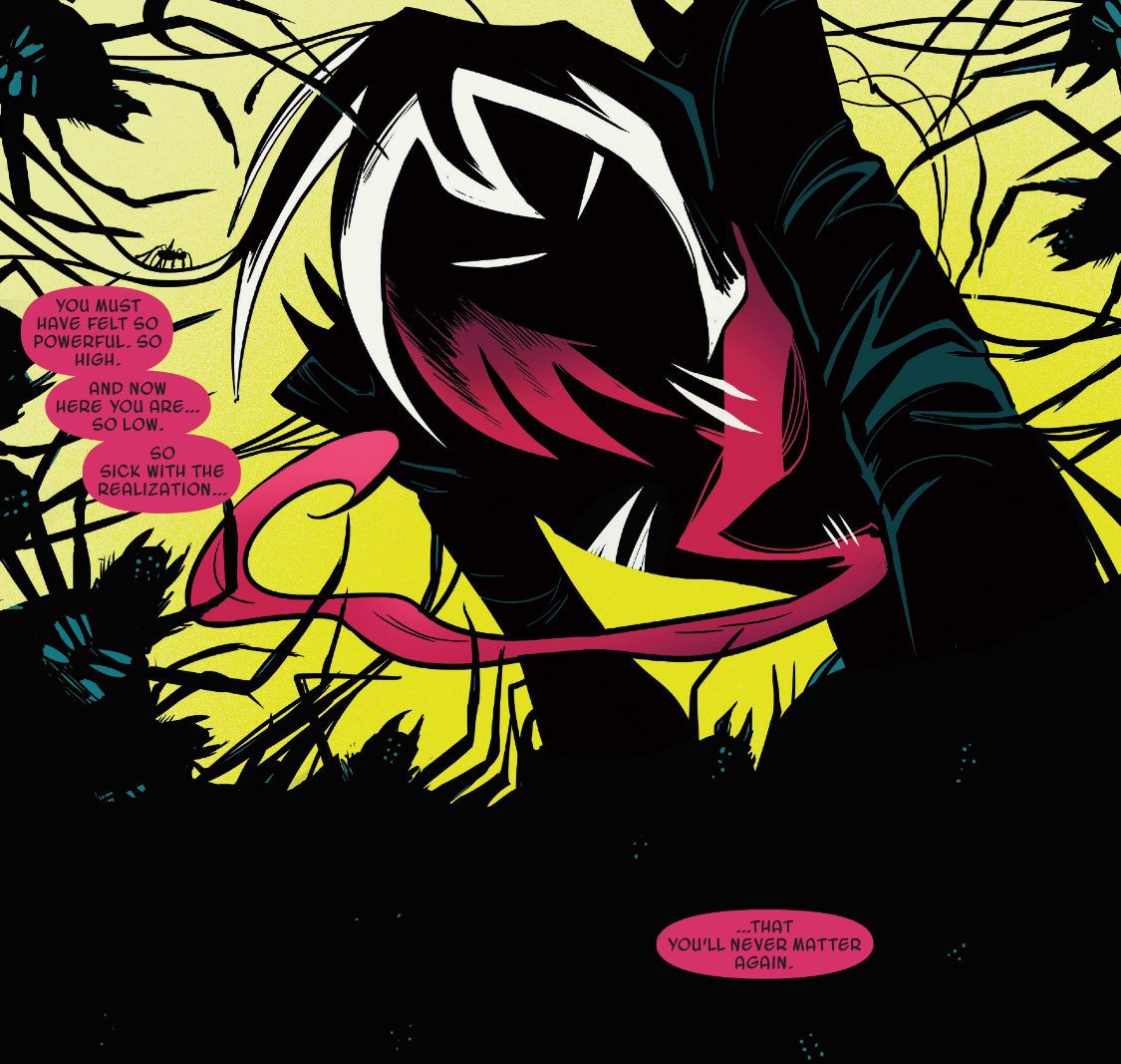JAVI’S HUH?: How is Venom controlling the spiders? Did she witness Rogers’ murder through their eyes?