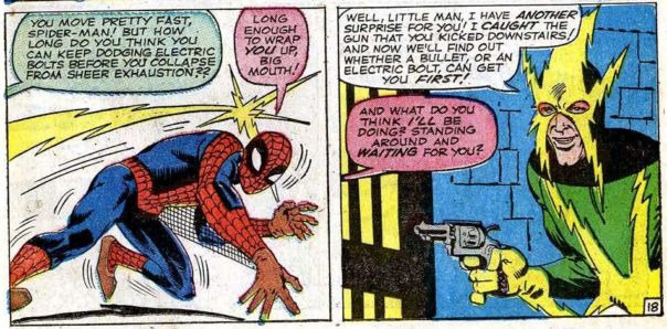 Does Electro seriously think Spidey’s just going to stand still and allow himself to be shot?