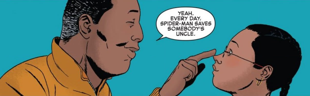 Going back to Spider-Man’s early days after a quick recap of his origin, Spidey stops a burglary at a small grocery store. In the process, he saves two guys. We follow the life of one of those men until in present day, the man is able to see Spider-Man once more and tell him thanks, upon which we realize that even though Spider-Man couldn’t save his own uncle, he could save someone else’s.