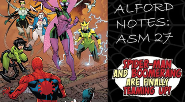 The Beetle has formed a new gang consisting of all female villains – White Rabbit, Scorpia, Lady Octopus, Trapstr, and Electro. They call themselves the Syndicate and they are after one thing – Boomerang! Unfortunately, Boomy’s currently helping out at F.E.A.S.T. and hitting on Aunt May.