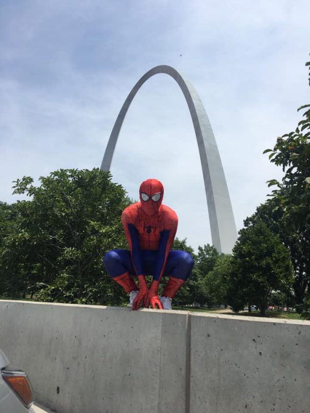 All three major news stations in the St. Louis area covered this story about a kind-hearted Spider-Man getting seriously injured. We wish him well. A go fund me site has been set up for his medical bills. Check out all three reports.