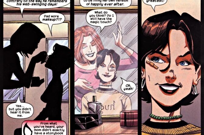 May’s legs are hiding the scariest thing in this panel … the bucket of Colonel Chicken!