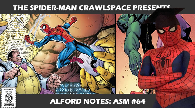Are you one who likes Spencer’s take on bad villains, Kindred plot progressions, onomatopoeias, and mysteries to ponder? Then this is the issue for you! This issue has everything you are looking for, EXCEPT what you see on the cover! Why are we wasting time with this opening blurb? Face front, Clever Crawlspacers! It’s time to review ASM #64!