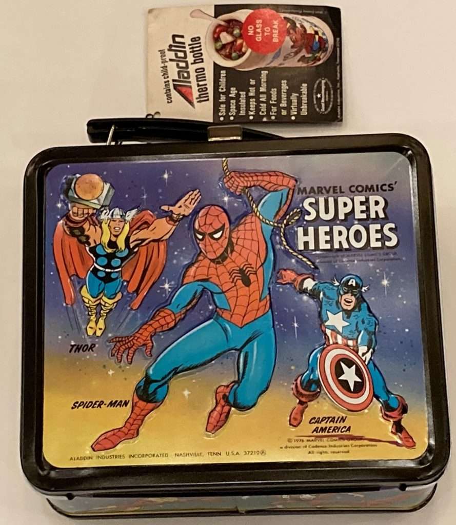 And now, the crowning jewel of school items (and bragging rights for the kids who had them):  Marvel Lunchboxes! Those wonderful, colorful, stamped/3-D relief pieces of art were a “must have” for young Marvel fans.