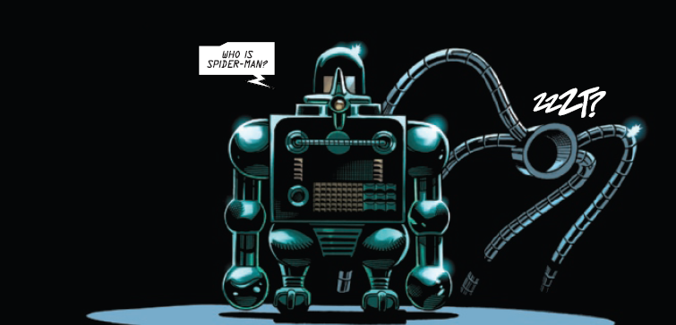 The reference to the Living Brain makes me wonder if the villain of Amazing 900 is going to be Steve Petty, from Web of Spider-Man 35-36.That’s an obscure villain for an anniversary issue. And it’s embarrassing for Doc Ock to be captured by a loser like that.