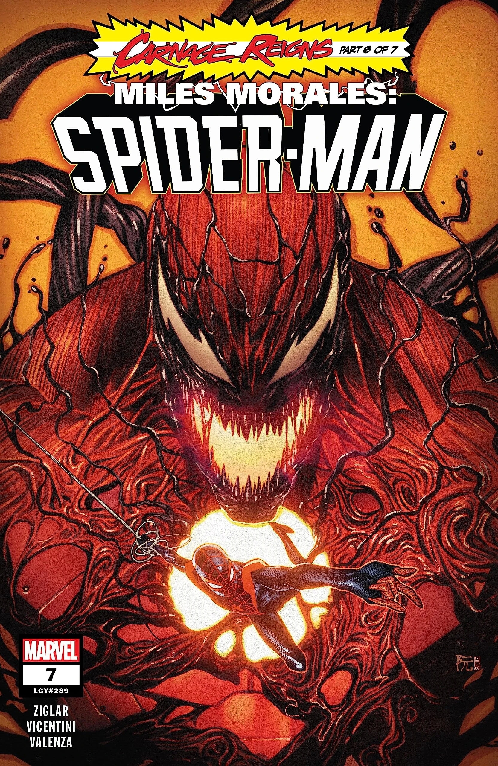 CLETUS KASADY’s unleashed maximum carnage upon NYC with the awesome power of his new Extrembiote, and the only one left to stand in his way is MILES MORALES, who may have stumbled upon Cletus’ one weakness – which means Cletus will stop at nothing to put Miles down for good. To have a chance at stopping him, Miles will need help from the most unexpected allies…Cletus got an upgrade – why can’t Miles?!