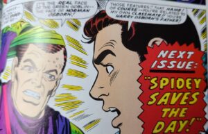 And even if there was a flashback showing this interaction, that doesn’t fit in with what we saw in ASM #39 – Peter recognizes the unmasked Goblin from “that hair, those facial features” and realizes it’s Harry’s father.