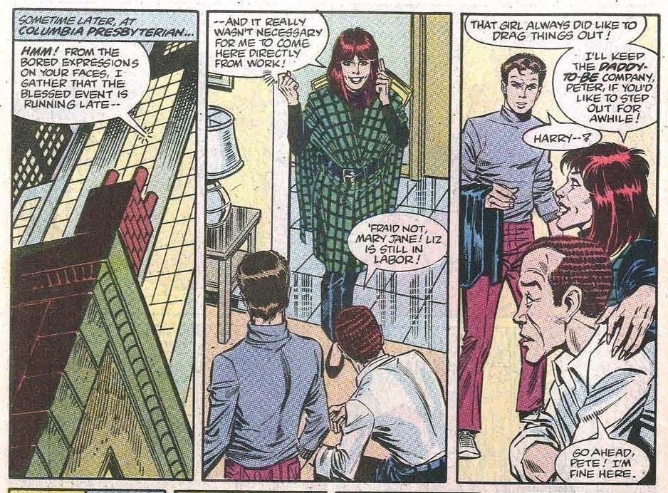 MJ: “I’ll keep Harry company Peter, if you’d like to step out and … *swing around* … for awhile.”