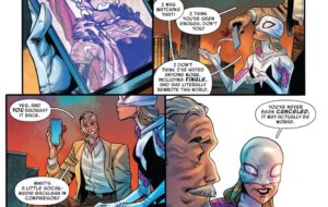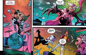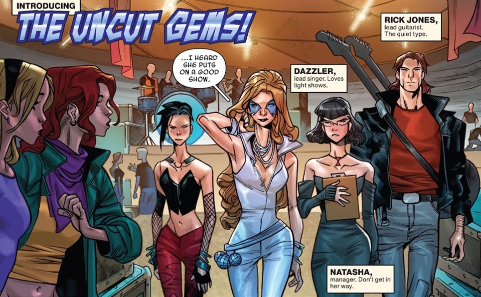- First of all, I am just glad that we get to see Gwen spend more quality time with her band. Sometimes we forget that she is still a teenager who has the aspirations to become a rock star. And she is well on her way to becoming one. Her band was chosen to go on tour with Dazzler and her crew. And although there immediately appears to be some ulterior motives involved, Gwen nonetheless will get to play, jam and dazzle on the grandest stages of them all. It’s also heartwarming to see the more personal moments that Gwen is sharing with her friends and her father. Her life has been crazy lately, and she has literally and figuratively been distant from the closest people in her life. It brings some peace of mind to witness her actually living out a “real” life.