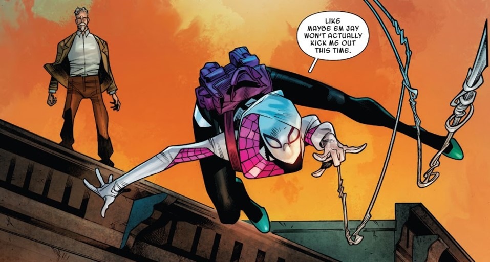 - In the first issue, we get not one, but two superhero clashes, where Gwen obviously comes out as the winner. While she is trying to focus her attention and energy to living an almost-normal life, things naturally get in the way and the villains always end up interfering with her plans to just chill out and have some fun. But the action was tight, wild, crazy, especially when there was a Hulk involved.