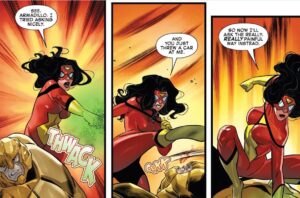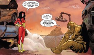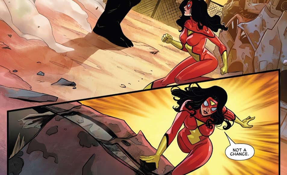 – – Spider-Woman’s supporting cast has always been strong, as well. It was nice to see familiar faces like Captain Marvel, Madame Web, and Spider-Man helping her out and lending a hand. Speaking of Spider-Man, I am getting really hyped for the upcoming Gang War. Spidey is acting extra proactive lately, and it seems like he has a solid plan to take down all the gang leaders who are trying to fight it out for control of the city. It will be interesting to see the role that Spider-Woman will play in the next big comic book event. But one thing is for sure: Spider-Man is sounding and looking like he really means business this time around. He is not playing around, and Spider-Woman is also going to have to get in the right state of mind for the perfect storm that is coming.