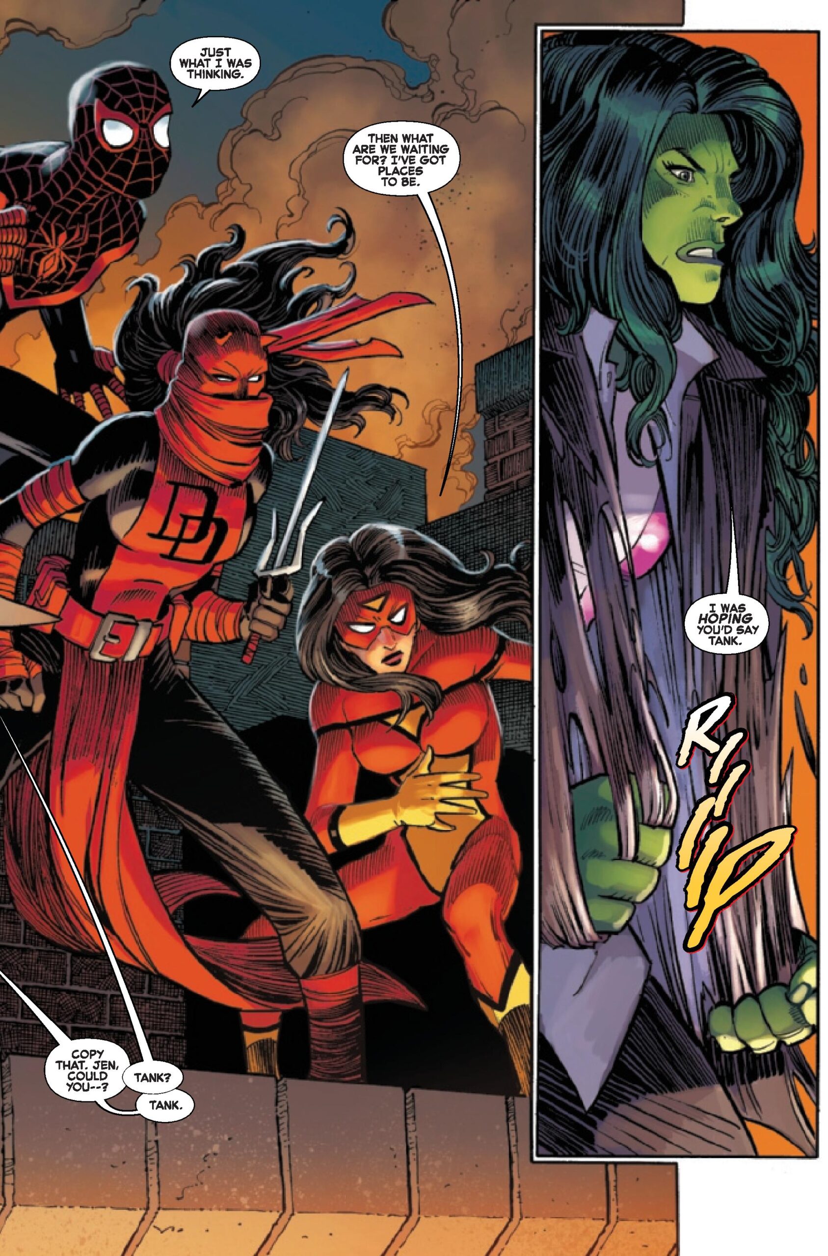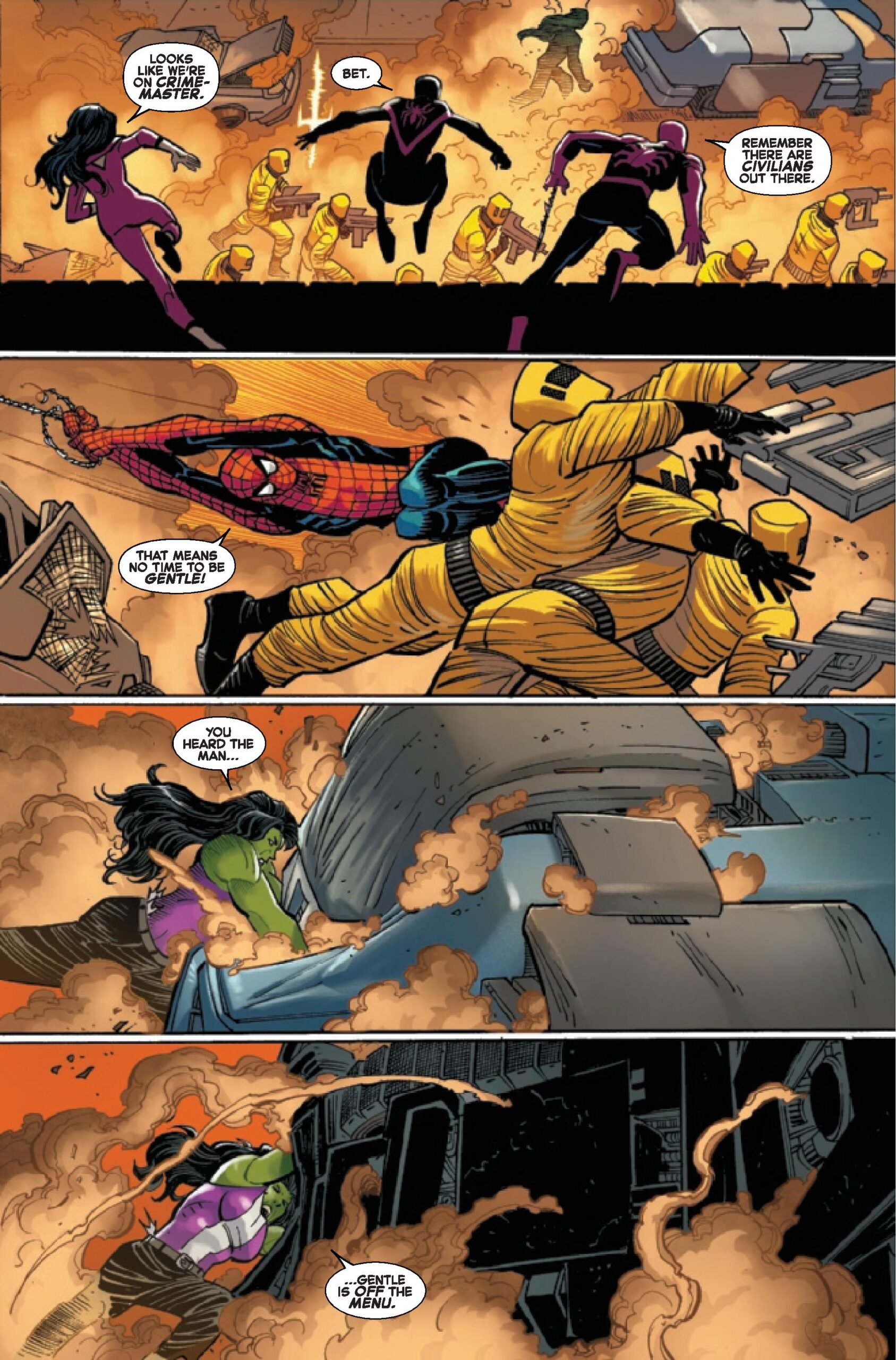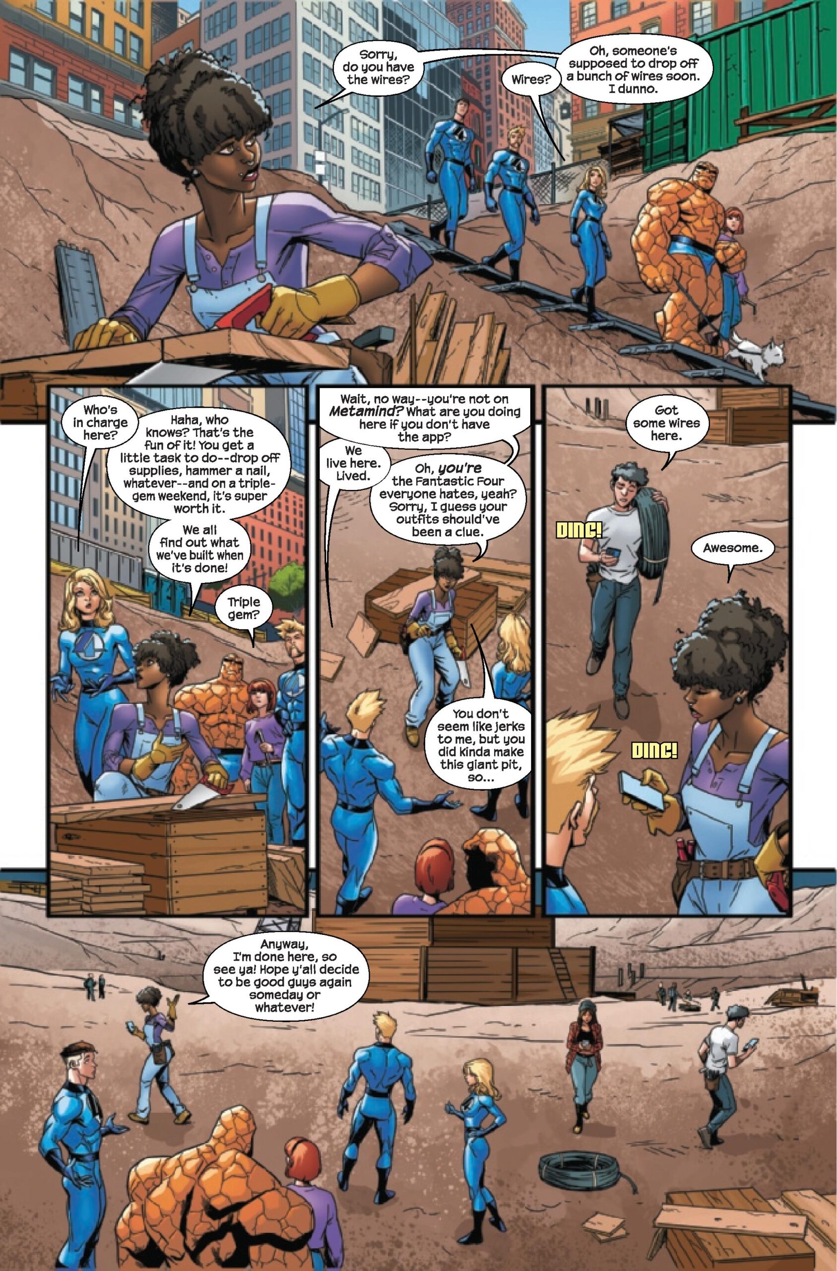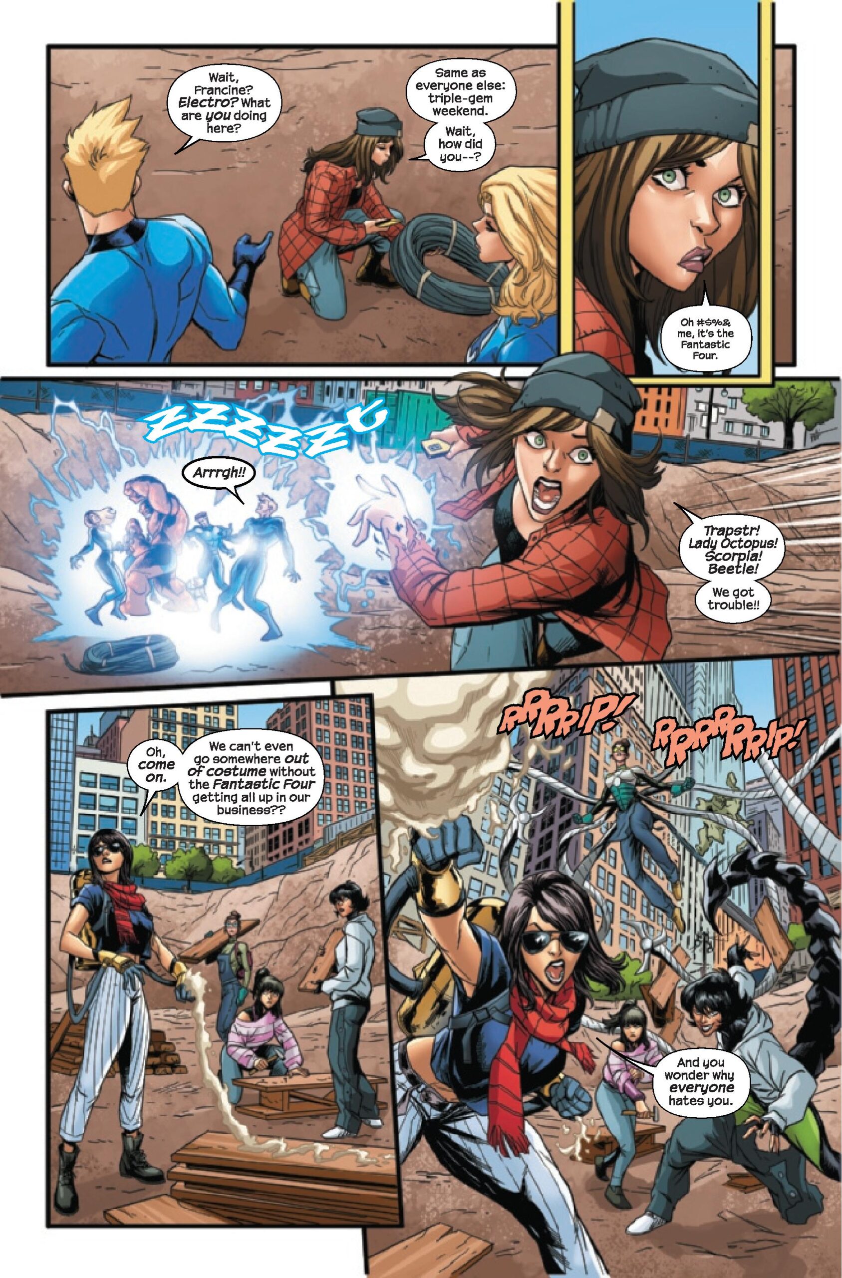 Wait, Beetle and her group are appearing in an FF story set in New York, and she doesn’t appear to be focused on her father or the Gang War (at least from these panels)?